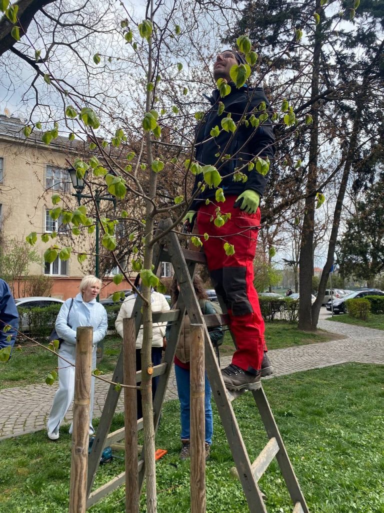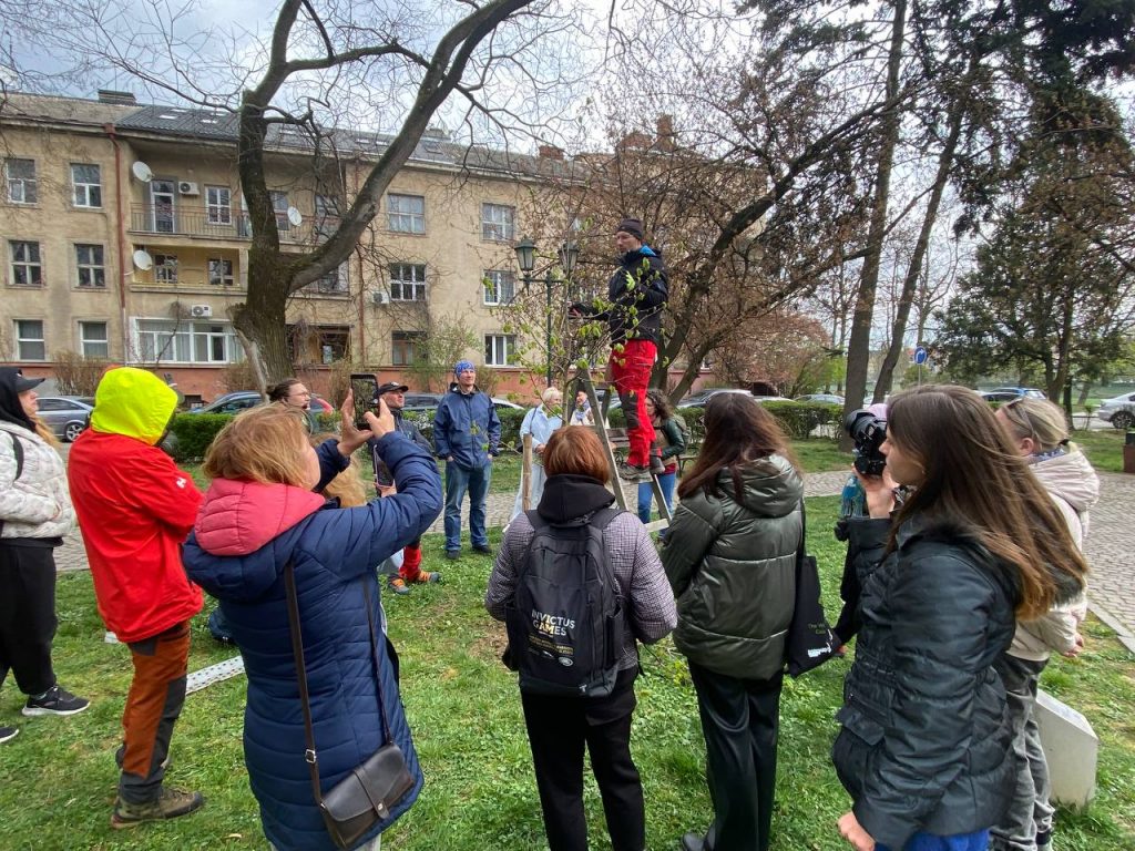 Практична частина передбачала проведення демонстраційних робіт у міському просторі, зокрема висадку дерев із професійним супроводом та догляд за наявними зеленими насадженнями. То ж учасники мали можливість закріпити отримані знання безпосередньо в польових умовах.